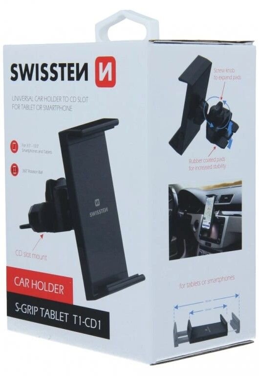 Die universelle Halterung Swissten S-Grip T1-CD1 ermöglicht eine bequeme und sichere Befestigung von Mobiltelefonen und Tablets mit einer Größe von 3,5" bis 10". Durch die Montage im CD-Schacht werden die Lüftungsschlitze nicht belastet und es bleiben keine Spuren auf dem Armaturenbrett. Die Halterung verfügt über stabile Klemmen – eine ist mechanisch einstellbar, die andere passt sich automatisch an. Eine ideale Lösung für alle, die ihr Gerät griffbereit haben möchten, ohne die Sicht durch die Windschutzscheibe einzuschränken.